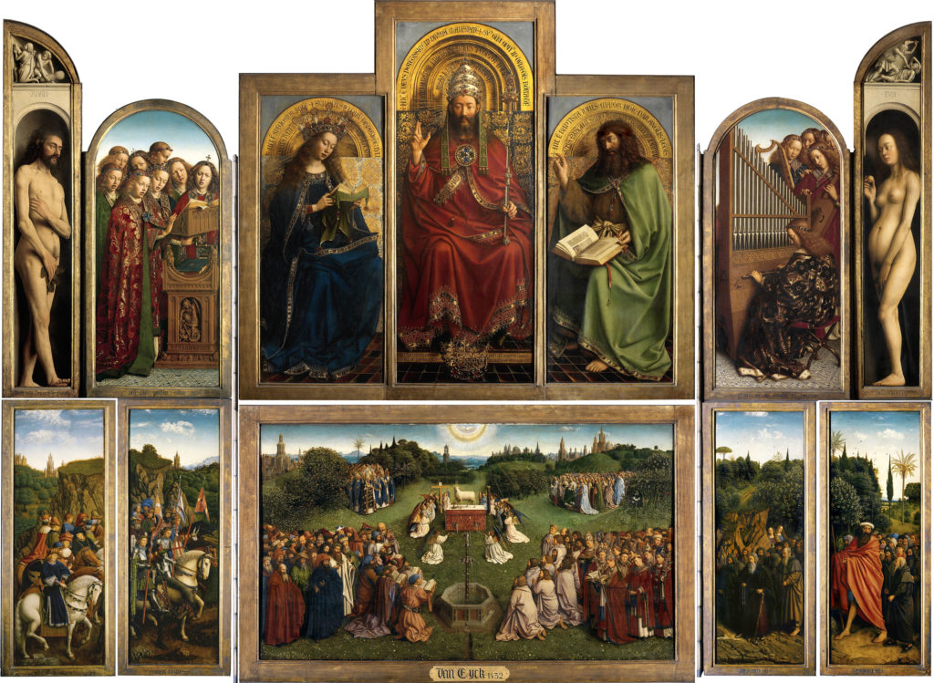 Huit panneaux de l’Agneau mystique dans une même exposition