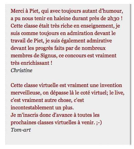 La classe virtuelle est un rendez-vous très attendu, c’est un grand moment d’échange, apprécié par tous ceux qui y participent. Les membres qui ont été invités ont pu profiter de conseils pendant plus de deux heures.