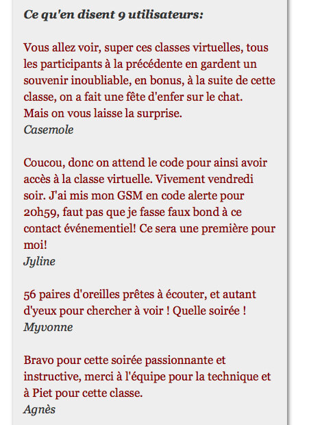 Voyez ce que Piet qui à créé ce Cours vous apporte comme preuves de son efficacité