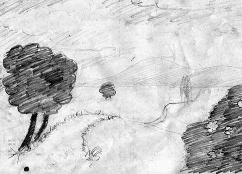 … Onze semaines plus tôt elle n’arrivait qu’à faire ce paysage, presque enfantin, publié, bien entendu, avec son autorisation.