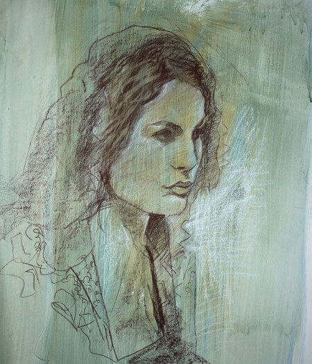 Sandrine réalise des portraits mixtes dessin-peinture qui plaisent beaucoup