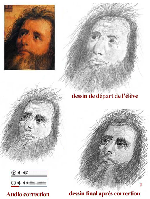 Après avoir envoyé son dessin l’élève peut, si son dessin est remarqué, recevoir des conseils audio. Il y a des centaines de corrections audio à écouter sur le Cours Graphite.